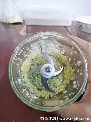 攪拌機(jī)攪蒜的速度非???,放進(jìn)去不到十秒就絞好了,而且又碎,比我手剁的好很多。以后在家吃火鍋也不用擔(dān)心不好弄蒜泥了。