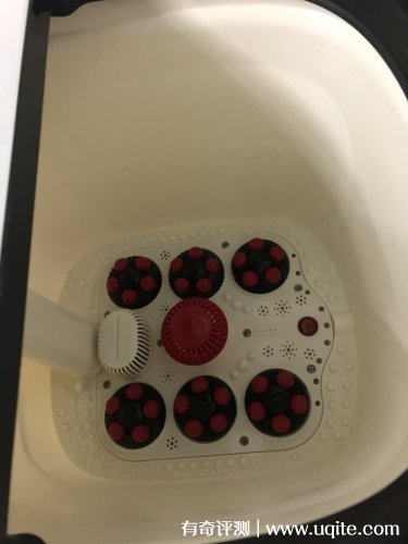 泡腳盆的質(zhì)量還挺好的,做工很完美,沒有任何的瑕疵,頂部面板有可用來操作功能模式的觸屏按鍵,都有文字標注,操作起來上手快。泡腳盆的底部有六個圓形按摩扭,在泡腳的過程中,有按摩放松的效果。