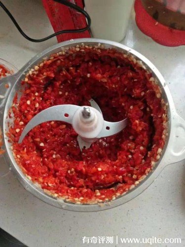 前幾天放假在家就自己做了一杠剁椒,磨出來的紅辣椒顏色是又好看,而且質地有細膩,關鍵是不用手剁,一點辣手的感覺都沒有,真的是很方便。
