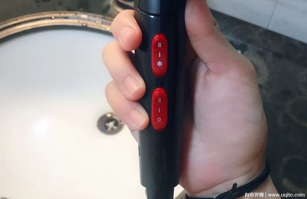 沙宣電吹風(fēng)實(shí)物做工方面沒(méi)讓我失望,很精致的感覺(jué),機(jī)身主體都是黑色,尾部的風(fēng)網(wǎng)是紅色的,配色很好,摸著也有質(zhì)感,重量比想象中要輕,用著不累人??烧郫B收納,有兩個(gè)開(kāi)關(guān),操作也簡(jiǎn)單。