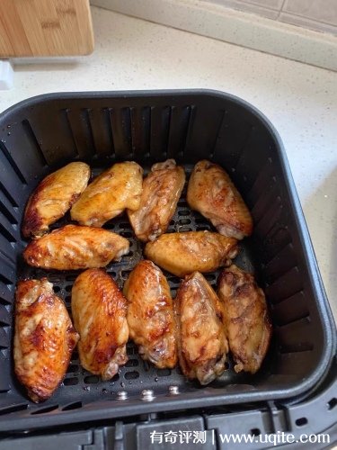 這款炸鍋的功能雖然很多,但是操作起來還是很容易上手的,每一個按鍵都有圖標標記,基本上一看就能明白。第一次使用這款空氣炸鍋我是做的烤翅,炸鍋的受熱過程還是很均勻的,出來的烤翅基本上沒有出現(xiàn)焦糊現(xiàn)象,而且吃起來真的一點不油膩,很焦嫩。