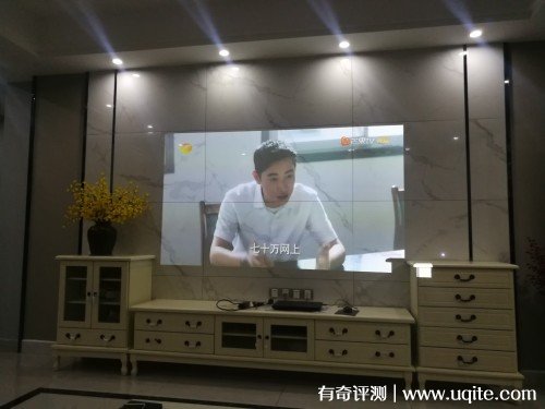 這款投影儀還有AI語言功能,可以語言調(diào)節(jié)設(shè)備,完全都不用上手操作。拿到投影儀之后,我就迫不及待的在客廳的墻面上使用了一下,雖然是白色背景,但是上面還有花紋,本來還有點(diǎn)擔(dān)心效果不好,沒想到還挺清晰,而且開著燈也不影響觀看,這就很厲害了。