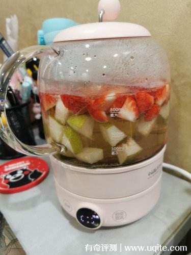 這款養(yǎng)生壺是偏可愛的風(fēng)格,粉粉的,而且線條很圓潤,上面還有haloKitty的圖案,擺放在家里就挺別具風(fēng)格的。養(yǎng)生壺的體積不算很大,做工和質(zhì)量很好,而且沒有異味,機身喝底座是可以分離的,平時清洗起來也很方便。