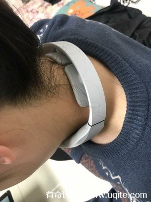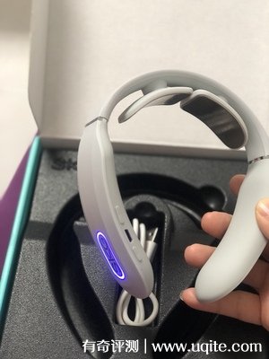 這款SKG頸椎按摩器的體積是真一點不大,拿在手上很輕巧,而且顏值很高,看著很上檔次。頸部是兩塊長方形的磁片設(shè)計,其弧度也是與頸部的弧度相一致,戴上之后服帖度很高。