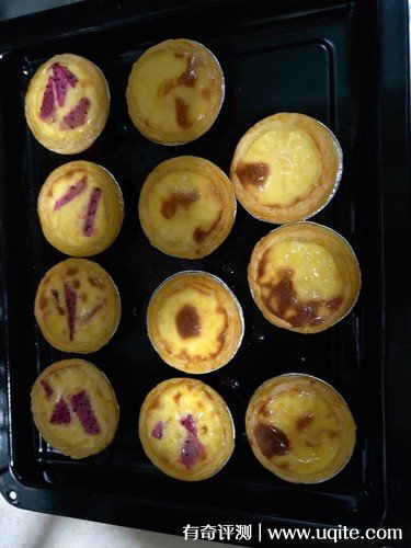 剛到手的時(shí)候我就按照網(wǎng)上的配方烤了一份蛋撻,雖然是第一次烤,但出來的成品還是很不錯(cuò)的,完全沒有烤糊,烤的外殼酥脆,內(nèi)餡入口就化了,而且吃起來還奶香味十足,我還創(chuàng)新,烤了一份火龍果味的,吃起來也不錯(cuò)。