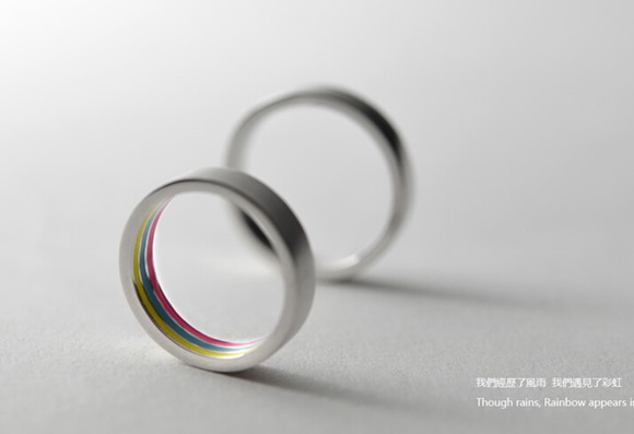彩虹大家都見過,一種在雨后才會產(chǎn)生的自然現(xiàn)象,彩虹戒指很漂亮的時尚戒指。彩虹是活力、年輕與浪漫的象征,在有的地方也是好運的代名詞。而今天,設(shè)計師便將含義豐富的這一自然元素融入進了情侶的日常生活中,一對彩虹愛情戒指,讓彼此牢記當(dāng)初遇見的浪漫。
