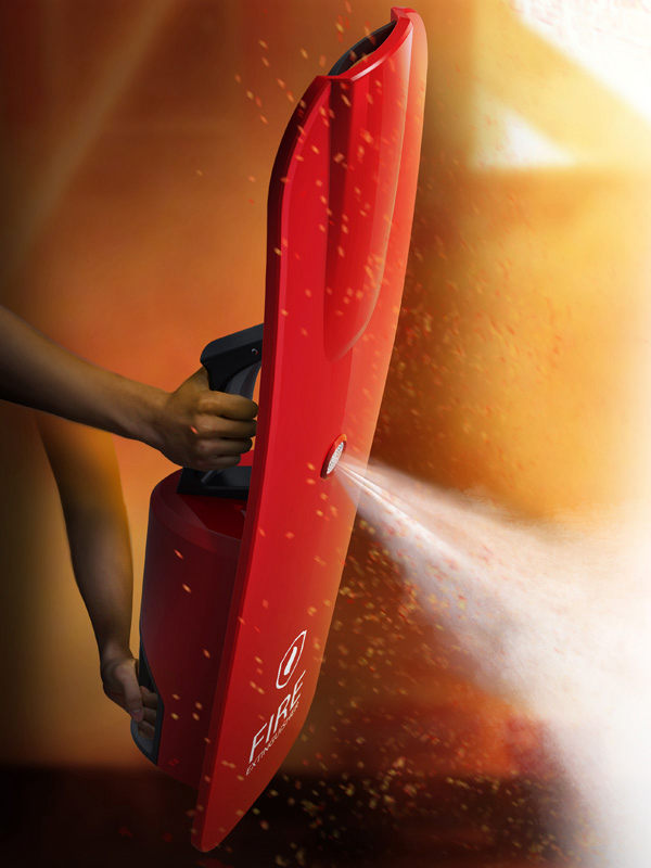 很多公眾場(chǎng)合發(fā)生火災(zāi)的時(shí)候,人們往往不知道滅火器的位置,設(shè)計(jì)師Hyejeong Kong因此設(shè)計(jì)了一款名叫I’m Here的滅火器。它內(nèi)部安置了煙霧探測(cè)器和報(bào)警聲音以及照明,在火災(zāi)發(fā)生時(shí),它不僅提醒人們火災(zāi),還可以定位滅火器的位置和照明,大大的提高了人們逃生的機(jī)率。