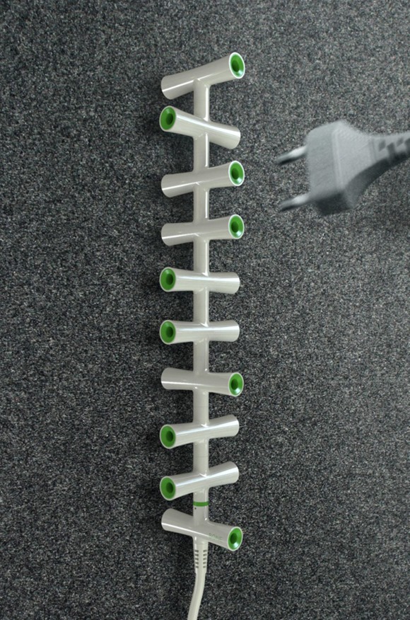 Bone骨骼模塊化的活動(dòng)電源插座的設(shè)計(jì)靈感是來自人體脊椎的樣子,Bone具有創(chuàng)新和互動(dòng)的結(jié)構(gòu),只有四個(gè)部分組成,每個(gè)部分可以插入一個(gè)插頭,飄逸的樣子,可以根據(jù)自己需要進(jìn)行擴(kuò)展,打破了以往插座的外形,不過這種設(shè)計(jì)不適合用于三角插頭。相關(guān)閱讀:《彈出式插座:輕松解決插座不夠》《木質(zhì)創(chuàng)意插座 實(shí)用&裝飾都可以》《創(chuàng)意十字插座:橫豎都能用》