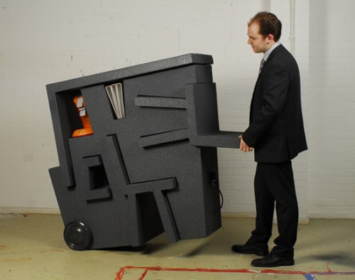 BLESS設(shè)計(jì)的這個(gè)創(chuàng)意辦公桌,看起來規(guī)規(guī)矩矩,兩邊具有收納空間可以放置文具雜物。所謂隱藏,就是翻轉(zhuǎn)180度之后,棒棒軟綿綿的床,熬夜加班完,也能好好的休息。