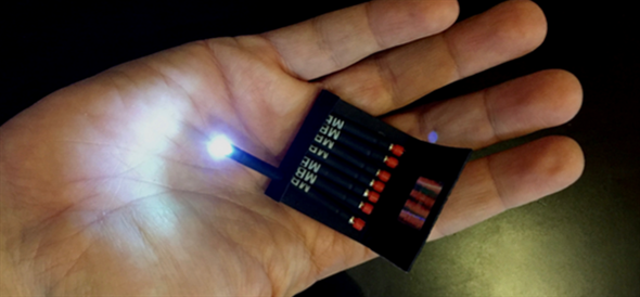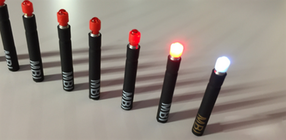 從外觀上來看,MBI與傳統(tǒng)的火柴并沒有太大的區(qū)別。其頂部的LED燈泡正好與傳統(tǒng)火柴頭處的火藥非常相似。每根 MBI的長(zhǎng)度為20毫米,直徑僅為3毫米,甚至比普通的火柴棍還要小下。MBI的表面采用了手感比較舒適的橡膠材質(zhì),拿起來非常舒服。