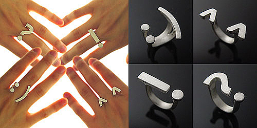 如今我們已經(jīng)習(xí)慣于在互聯(lián)網(wǎng)、手機以及等的電子及通訊設(shè)備上使用各種表情符號,像笑臉、迷惑、憤怒等,這些符號已漸漸成為生活中不可或缺的一部分。芬蘭的兩位手工藝人更將這些符號應(yīng)用到了精美的指環(huán)上。瞧瞧圖中這些指環(huán):問號、感嘆號,一雙笑眼、一張笑臉,都是常見常用的。全部精心設(shè)計,手工制作,材料為純銀,非常精美。上面還有設(shè)計者的簽名,產(chǎn)地及生產(chǎn)日期。
