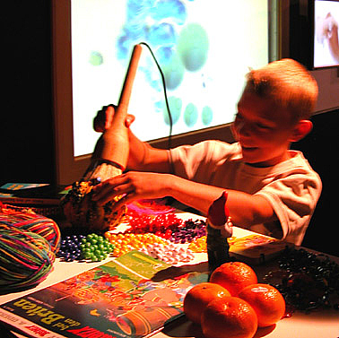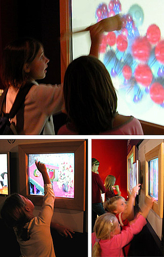 畫布呢,是一個(gè)帶背投的大型觸摸屏。您盡可以在上面揮“毫”作畫。它不僅可以真實(shí)地再現(xiàn)剛才的取景,還能生動(dòng)地體現(xiàn)出不同壓力的筆觸。利用這樣的畫具,孩子們可以通過他們獨(dú)特的視角,探索開發(fā)出絕對(duì)個(gè)性的藝術(shù)作品。