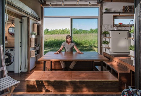 提起移動(dòng)屋,大多人都會(huì)把它同簡(jiǎn)陋、簡(jiǎn)單結(jié)合起來。然而這座 Alpha Tiny House 卻相當(dāng)精致精巧,廚房、浴室、客廳、臥室一應(yīng)俱全,全實(shí)木裝修,還擁有外擴(kuò)觀景臺(tái)和超大可掀開的落地窗!這個(gè)移動(dòng)房產(chǎn)要價(jià)9.7萬美元,要比一棟小公寓還貴呢!