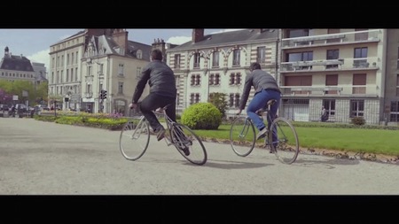 Trocadero Fixie 是一輛相當奇葩的死飛,玄機盡在看似普通的車架上,其下管有一處鎖緊開關,當開關處于未鎖狀態(tài)時,車架就可以左右扭曲,后輪隨著屁股給的壓力左右晃動,而前輪保持直線繼續(xù)前進。當開關處于鎖死狀態(tài)時,這就是一輛尋常的死飛。扭來扭去的,可不是那么容易控制呢。