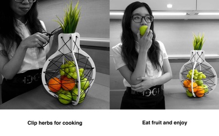 水果成熟過程中會釋放乙烯,這種氣體如果不能及時疏散,反而會讓水果自身成熟更快,也更容易腐爛。這款果籃獨一無二的分層和繩索鏤空結構加速氣體揮發(fā),而頂端的位置專門用來種植綠植,向上流動的乙烯正好被植物吸收,有助于它們自身成長。