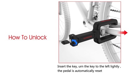 這款車鎖與車蹬合二為一,一體化的設(shè)計美觀整潔,使用也很簡單方便:開啟鎖具后將車蹬外側(cè)框?qū)?zhǔn)車架并推出,然后鎖上即可。為了美觀也要付出一定代價,就是路遇泥濘路面后車蹬會比較臟哦。