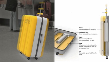 如果你的行李箱有貴重易碎物品,但又沒塞滿,撞碎的可能性很大哦。Air Pack是一個內(nèi)置充氣袋的行李箱,而充氣棒就是行李箱的拉桿,拉回抽動幾次就能把你的物品牢牢擠住,再也不怕道路顛簸咯。