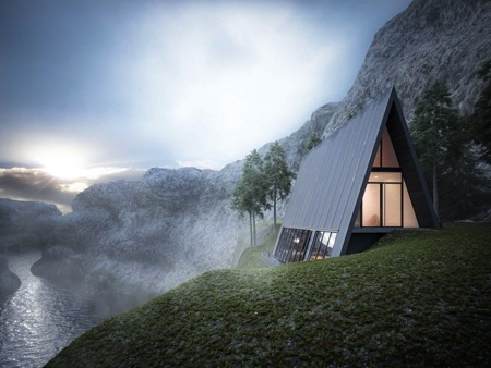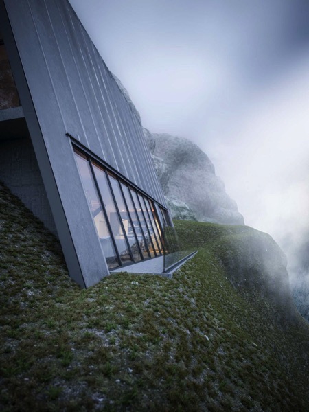 山上的風(fēng)景最美不過懸崖與云霧, Matthias Arndt 設(shè)計的這套山頂公寓正好矗立在一處懸崖邊緣上,窗戶的一側(cè)是神秘森林,一側(cè)是深不見底,云霧繚繞的峽谷深淵,想想就刺激,更別提住在里面啦~