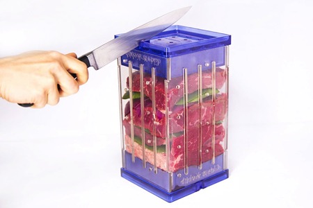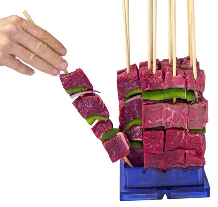 擼串兒時,“串兒”往往消耗極快。如何快準狠地制作串兒應當是衡量擼串滿意度的重要指標。將食材層疊放入這只制作盒,串上簽后再將它們切成均勻的方塊,制作出來的串不僅體態(tài)勻稱,制作速度還很快呢~