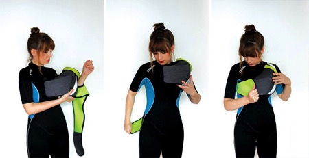 IUW 是專門為水上運(yùn)動(dòng)設(shè)計(jì)的漂浮裝置,兼具運(yùn)動(dòng)救生衣和可拋出設(shè)備兩者的功能。它內(nèi)部填充聚氨酯泡沫塑料,能夠提供足夠的浮力,讓人輕松漂浮,也有助于將人從水中拉出來。產(chǎn)品外層采用氯丁橡膠涂層的尼龍材料制作,具有極佳的保溫效果和耐磨防水或抗紫外線等屬性。顏色的選擇即突出了可視性,又明顯標(biāo)示了哪里可以直接拖拽等。選定的顏色搭配將產(chǎn)品外形分為兩個(gè)部分:基本組件采用熒光綠,浮力部分則選擇了陰影灰。這些顏色不僅增加了整個(gè)產(chǎn)品的可見度,同時(shí)也突出了用戶可以用來執(zhí)行特定動(dòng)作的部分。