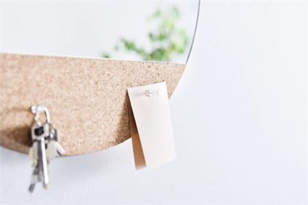 上面為鏡子,下面一小部分為軟木,可放置留言,可掛鑰匙,非常實(shí)用。