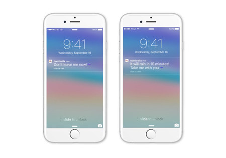 oombrella 是一款可以實(shí)時(shí)預(yù)報(bào)天氣的智能雨傘,內(nèi)含傳感器,能夠收集濕度、溫度、氣壓、光照強(qiáng)度等信息,并通過(guò)藍(lán)牙與手機(jī)上的氣象播報(bào)以及位置等服務(wù)相關(guān)聯(lián),及時(shí)將天氣變化發(fā)送到手機(jī)之上,同時(shí),使用傘把上的蜂鳴器和指示燈給予提示,以免沒(méi)聽到鈴聲而遺漏。