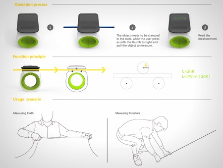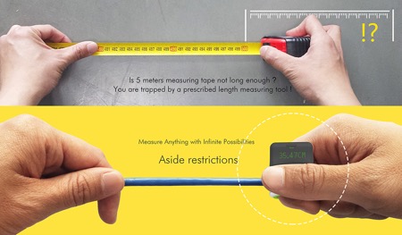 Infinite Ruler,正如其名字所提示,測(cè)量距離無(wú)限長(zhǎng),不受材料和大小的限制,只要把需要測(cè)量的物件從夾片中劃過(guò),即可得知具體長(zhǎng)度。