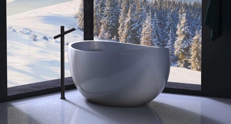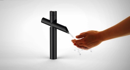 這款水龍頭不用想都知道該如何使用,只要上下掰動(dòng)出水口即可打開(kāi)關(guān)閉,極致簡(jiǎn)約。