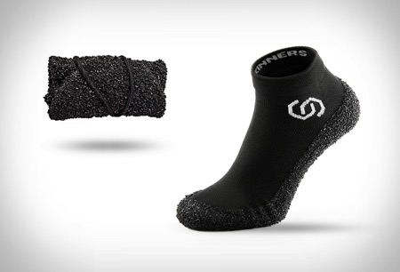 健身、戶外攀巖、徒步登山時最需要的裝備之一或許就是一雙抓地牢、緊身的鞋。Skinners是一雙專業(yè)運(yùn)動襪,在多種情況下可替代鞋使用。采用莫代爾材料編織,鞋底外層鋪滿了凹凸不平的塑料顆粒,提供強(qiáng)大抓地力和摩擦,最重要的是讓你獲得無鞋的親膚感,運(yùn)動表現(xiàn)更上一層樓。