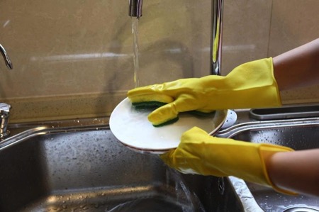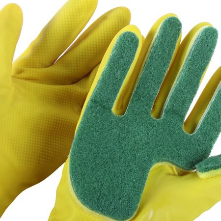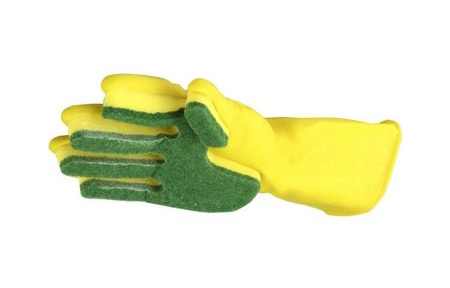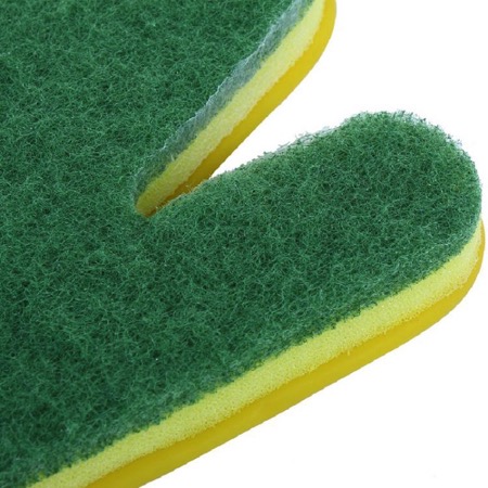 清洗油漬的餐具時不得不帶著手套又要拿著海綿塊,而這只手套則把兩者合二為一,每根手指都附有獨立海綿塊,因此在清理頑固油漬污漬時會得心應(yīng)手,事半功倍。