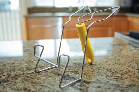 炒菜做飯,鍋蓋都是必不可少,但有時(shí)又非常鬧心,不知該放在哪。LidSitter,全才型鍋蓋助手讓你不愁何處安放,它的使用極其方便,只需將彈簧鋼絲一端輕輕置入鍋蓋把手內(nèi)或?qū)⑵淇ㄔ阱伾w圓帽上即可。由此鍋蓋會附著在鍋沿上(可自由滑動)或者立在灶臺上;此外,還能用于固定鍋蓋,湯匙、木鏟等都可以固定在上面,方便拿取。支架由不銹鋼彈簧絲和塑料手柄組成,靈活性和散熱效率都很好,在氣體爐灶上也可以安全地使用。鍋蓋助手適合絕大多數(shù)型號的鍋蓋,并且易于清洗和儲存。