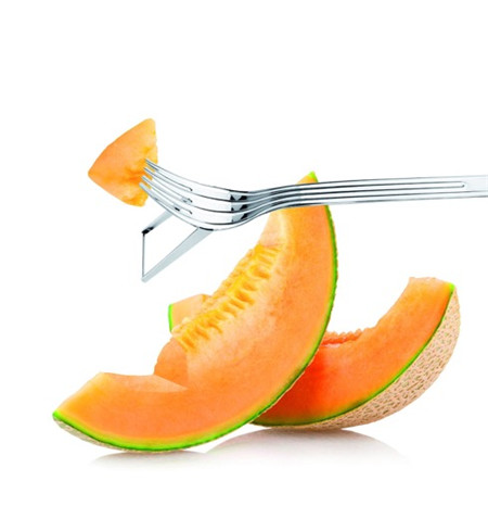 講究的人總喜歡專用餐具。有專門吃意面的旋轉(zhuǎn)叉子,這一次又出來(lái)一個(gè)專門吃哈密瓜的叉子,下面切塊,上面叉起來(lái),隨切隨吃,很是方便。
