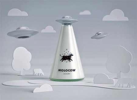 可怕的UFO把奶牛擄走了,就剩下香醇的牛奶啦!這款趣味牛奶瓶多么充滿想象力,是否聯(lián)想到了電影橋段呢。