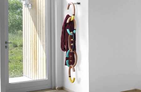 HANG-OVER是一款C、M字形木質(zhì)掛衣鉤,多個(gè)互相串聯(lián)組合,滿足你各種衣物比如圍巾、帽子、掛件還有包包的懸掛需求,極大節(jié)省衣架空間。
