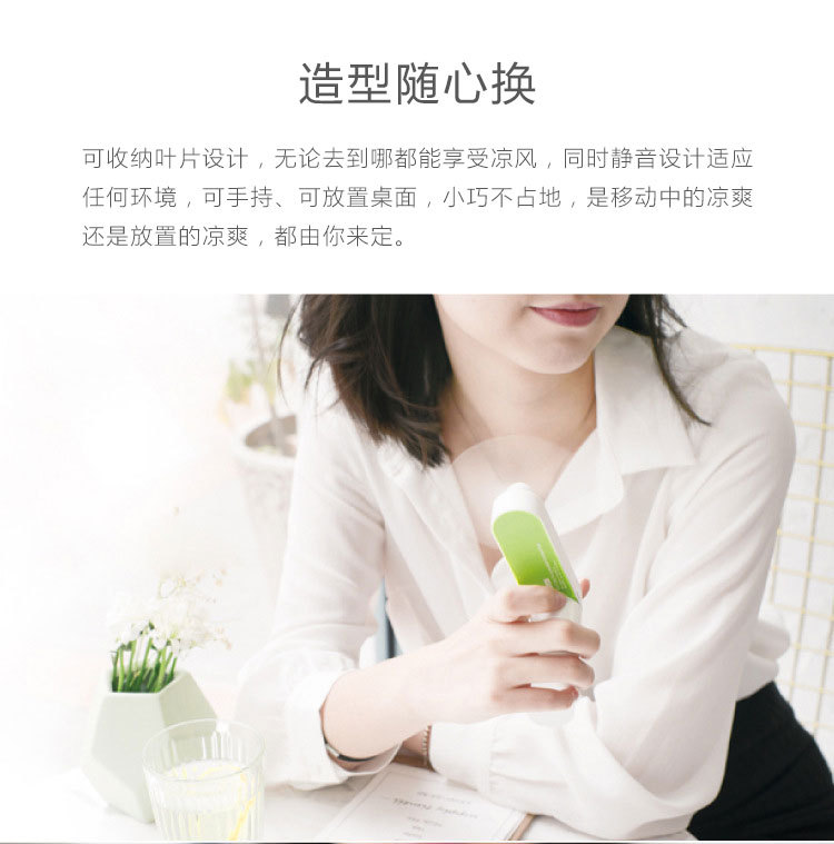 眼看夏日來襲,身上要是沒有準(zhǔn)備的有降暑設(shè)備那你就out了。今天為大家?guī)淼倪@款JANPIM迷你小風(fēng)扇請收好,JANPIM小風(fēng)扇采用可收納葉片的設(shè)計,無論你去到那里都能享受到?jīng)鲲L(fēng),可手持、也可放置到桌面,不占空間,設(shè)計小巧,攜帶方便;采用特質(zhì)硅膠,安全環(huán)保,無毒無味;采用usb接口充電,充滿一次可使用3小時左右。