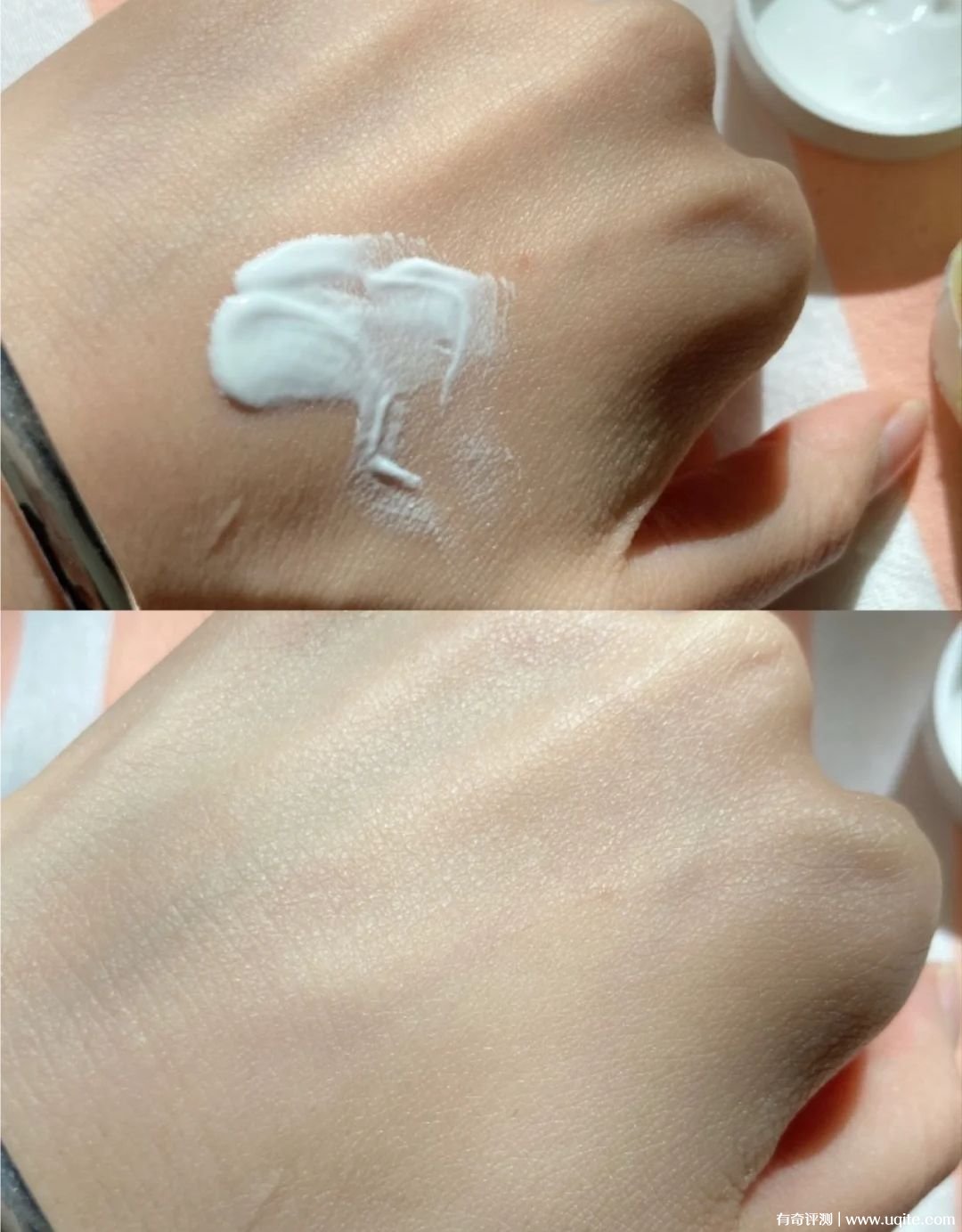 顏色來說,它增白效果還是很明顯的,但是因為輕薄,它整個妝感是很通透的類型,就像是媽生皮一樣,看不出來是抹了東西的。用完后整體膚色均勻透亮。至于遮暇效果,就比較一般了,主要是隱形毛孔,皮膚會看著更細(xì)膩,瑕疵只能淡化一點(diǎn)點(diǎn)。
