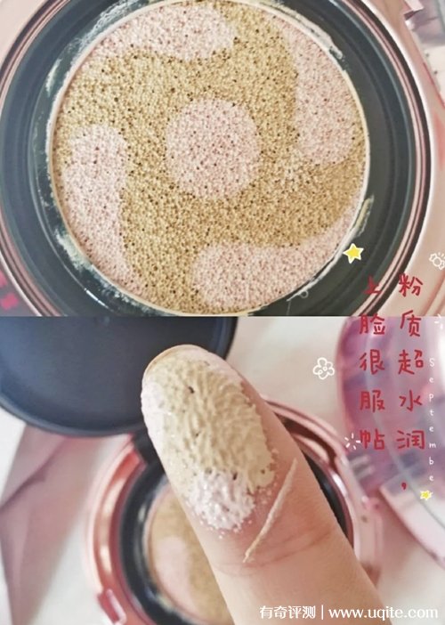 而這款小粉鉆精華氣墊,它是雙色氣墊,水潤(rùn)度高,遮瑕效果相對(duì)來說比較好,適合瑕疵皮。