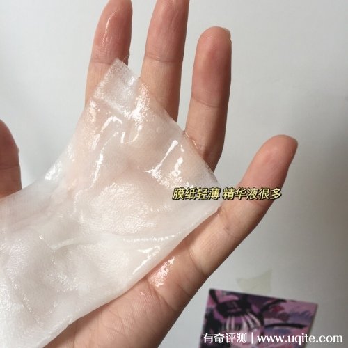 因嫩生面膜的膜布還蠻薄的,雖然薄,但它還蠻能掛精華的,面膜拿出來之后上面滿滿的都是精華,它大小裁剪的很好,不是那種容易變形的類型,貼在臉上也很透氣,不會(huì)覺得悶。