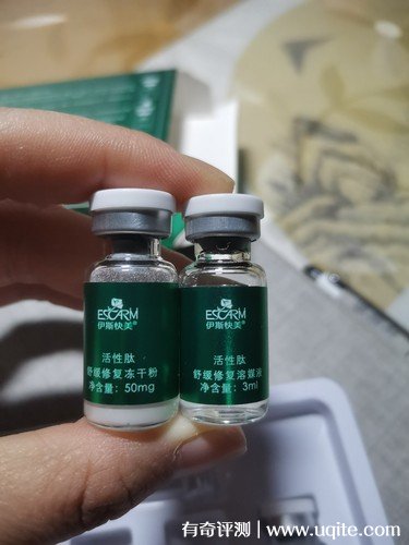 這款伊斯快美凍干粉是小盒裝的,所以我一共入手了三盒,每一盒里面分別有2支凍干粉和2支溶媒液。使用時凍干粉和溶媒液是需要進行融合使用的,這樣才能激發(fā)出凍干粉中的活性物質。