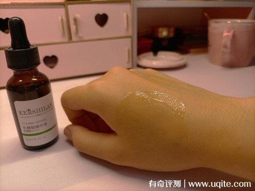 這款柯詩蘭精華原液是安瓶裝的,滴管式的設計,使用起來就還挺方便的,而且好控制使用量,這款柯詩蘭精華原液的質地是透明的,流動性很強,上手很好推開,沒有任何刺鼻的異味,就還挺不錯。