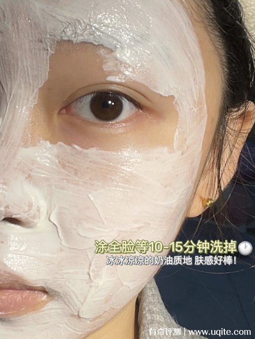 這款面膜我一般都是厚敷,敷的時間有也比較久,差不多半個小時左右,在敷的過程中可以看到它在慢慢的被吸收,膏體會慢慢的變薄。它清洗起來也很方便,我一般先用洗臉巾擦一下,然后再清洗,洗完之后臉還蠻清爽,不會有洗不干凈的黏膩感。