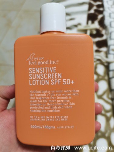 feelgood防曬霜到手之后一瓶還蠻大的,打開之后它的味道聞著也不刺激,我沒有聞到什么香精和酒精的味道,用在臉上也還蠻溫和的,沒有過敏。