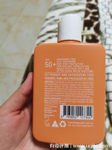 另外,這款feelgood防曬霜的防曬指數(shù)也蠻高的,SPF50+PA++++,大夏天用也是完全足夠的,我平時主要是上下班和周末出門,周末在戶外比較久,前幾個星期還頂著大太陽爬了個山,一整天下來也沒有曬黑,而且就出汗了它也沒掉,防水效果不錯。