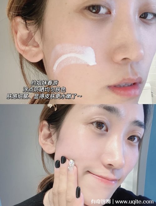 feelgood防曬霜涂完之后帶一點增白潤色的效果,涂完之后不會假白,挺自然的,跟原本的膚色融合的很好,用完后膚色看著均勻亮白了很多,臉上的一些瑕疵都被蓋住了一層,看著還蠻有光澤感的。而且涂完它之后后續(xù)化妝也不會搓泥,做為妝前打底挺合適、挺服帖的。