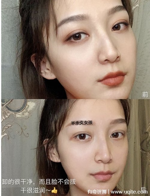 lululun卸妝膏清洗的時候多用溫水沖幾遍就好,不需要用洗面奶,洗完不油膩不緊繃。我臉上是用了粉底液、眉筆、眼影、睫毛膏以及口紅的,卸干凈完全沒問題,像平時不畫眼妝的話,就更快了。