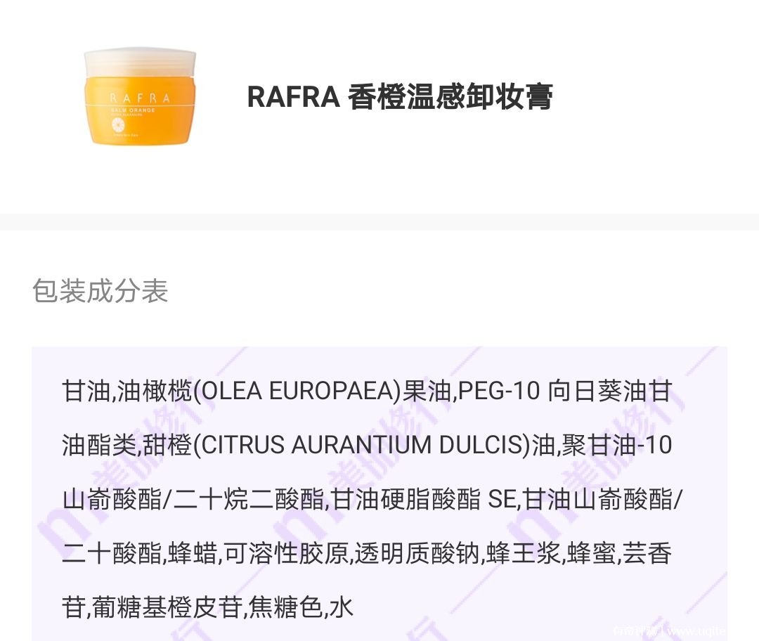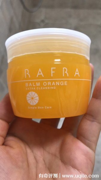 rafra卸妝膏實物比我想象中要少一些,打開之后味道就飄出來了,超級香甜的橙子味,很真很自然的感覺,聞著很舒服。質地是那種很細膩的感覺,不過剛上手會厚重,而且有種能拉絲的粘稠感,在掌心會慢慢變熱。上臉之后使用感比較一般,后面完全揉開之后,加水又能立馬乳化,粘膩感消失,很神奇。