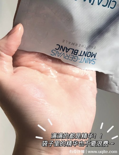 勃朗圣泉面膜的精華量算是多的了,膜布拿出來后袋子里面還有點,可以抹抹脖子,精華質(zhì)地不粘膩,使用感不錯,能明顯感覺皮膚一點一點的把精華吸收進(jìn)去了。