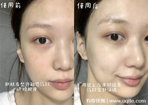 這款面膜用完后皮膚水水嫩嫩的,很透亮,視覺上毛孔看著也收縮了些,保濕力來說蠻好的,隔天還是嫩嫩的滑滑的感覺,上妝很服帖。它修復(fù)的效果還是蠻明顯的,我目前只用了3張,臉上的泛紅基本上都消退了,紅血絲淡了很多,不近看是完全看不出來的,皮膚整體還蠻細(xì)膩的,狀態(tài)很好。