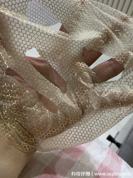 美肌顏面膜的膜布比我想象中要薄很多,外層是蜂窩設(shè)計,內(nèi)層是白色的,上臉服帖透氣,大小裁剪之類的也都很合適。里面精華含量蠻多的,拿出膜布后還有多余的夠抹脖子胳膊的。精華質(zhì)地不粘膩,吸收不錯,使用過程中能感覺膜布越來越干。