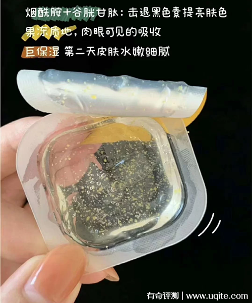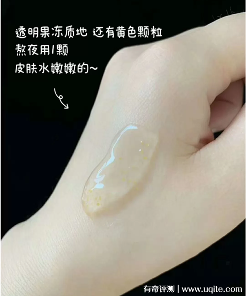 這款春雨睡眠面膜是果凍膠囊裝的,一盒是十粒,平時使用起來就還蠻方便的,而且遇到出門情況也很好攜帶。面膜的質(zhì)地是透明的,里面有一些細(xì)小的黃色微囊修復(fù)因子,涂抹之后是會被均勻吸收掉的。